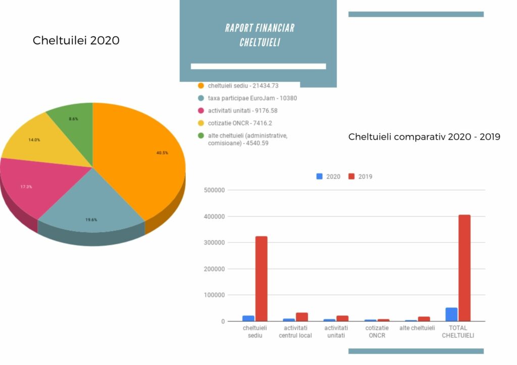 Există și o diferență între încasările și cheltuielile cu cotizația, dat fiind că la finalul anului 2020, Centrul nostru Local a plătit în avans cotizația pentru o parte din membri către ONCR, și urmează să fie recuperată. Cotizația pe care cercetașii o plătesc, din acest an, anual, are două componente: partea care merge către Organizația Națională în valoare de 50 lei și o sumă care rămâne Centrului Local în valoare de 10 lei.
